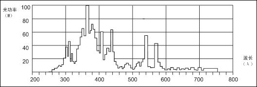 高壓汞燈可以產(chǎn)生輻射強烈的 310nm 、365nm、410nm 等波長的特征紫外光(UV)、可見光
