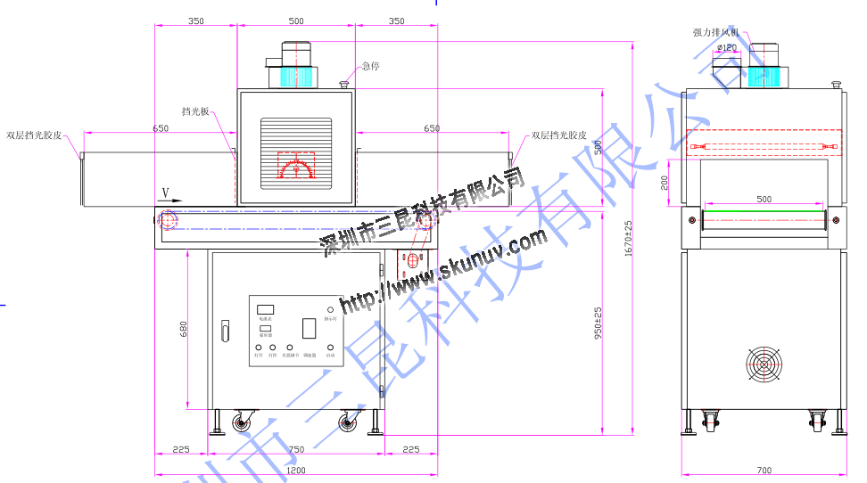 - 線路板顯影后專用雙燈UV固化機365/385nm雙波峰上下排風散熱設計