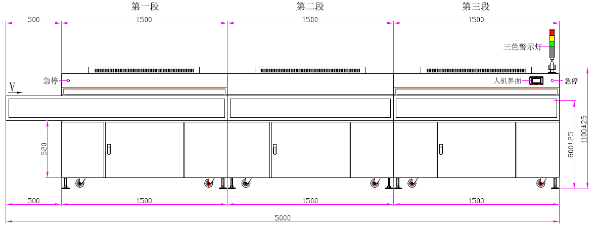 9、輸送速度:0~5m/min(每段速度單獨控制)