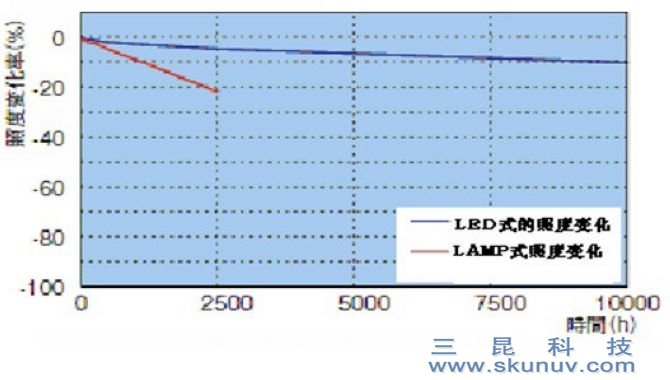 減少耗材成本,LED的使用時間一般可以達到25000-30000小時,而傳統LAMP方式照射機約2000小時左右就需要更換燈管,LED-UV采用電纜輸出,無光纖導光,LED可以為您減少設備耗材成本,提高設備利用率。