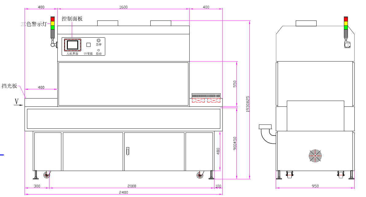 - 大功率UV絲印油墨字符UVLED固化設備900mm寬幅PCB光固設備